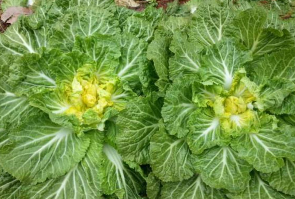 겨울의 추운 날씨 때문에 속이 꽉 차지 못하고 잎이 옆으로 퍼져 있습니다.